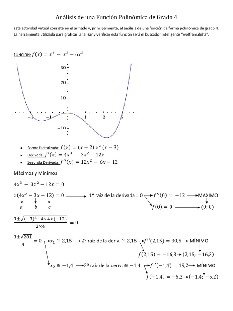 Analisis De Una Funcion Polinomica De Grado 4 Derivado Funcion Matematicas