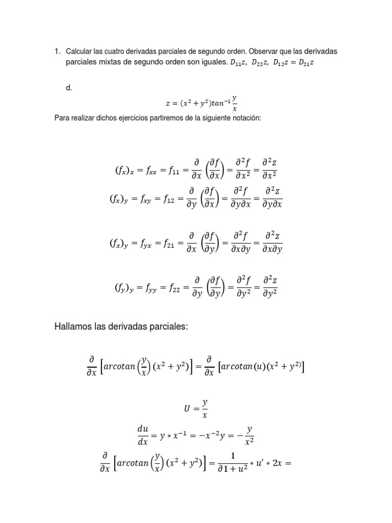 Calcular Las Cuatro Derivadas Parciales De Segundo Orden Derivado Sustraccion
