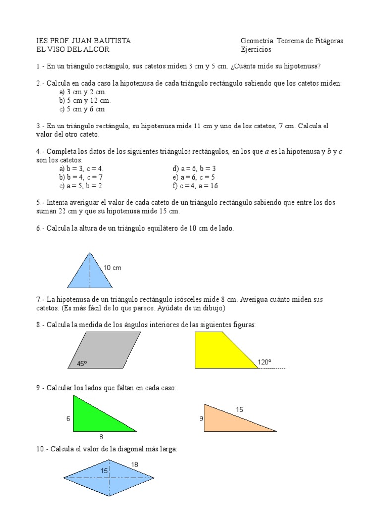 Pdf Ejercicios Pitagoras 2ºeso Geometria Clasica Triangulo